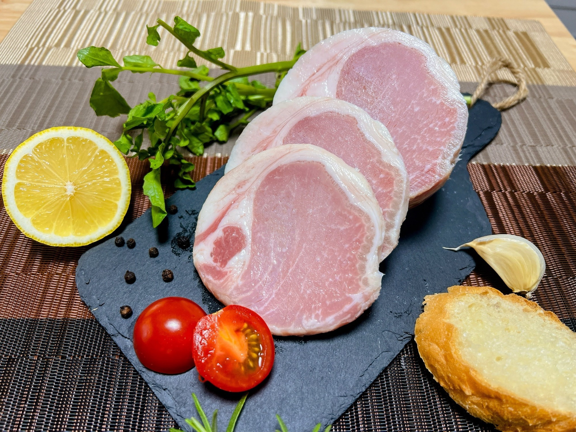 やわらかく上質なロースを使用。ブロックだからできる、お好みの厚さに切ってハムステーキにすると絶品。表面をサッと焼いた後のフライパンでバゲットを焼くとロースハムの旨味をまるごといただけます。